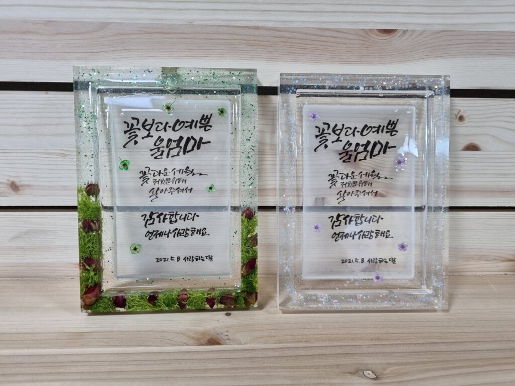 오늘은 캘리그라피와 접목된 레진 액자를 소개하려 한다.